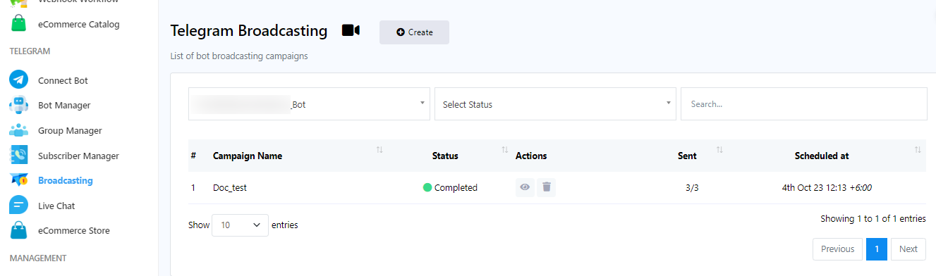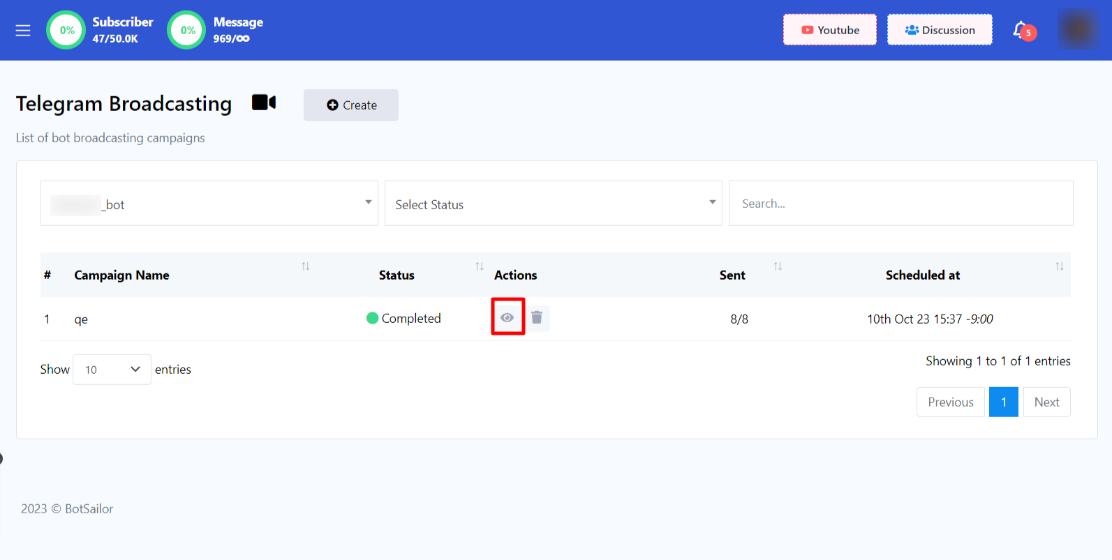 - You can check Status, Targeted number of subscribers, Message Count and Sent report here.
